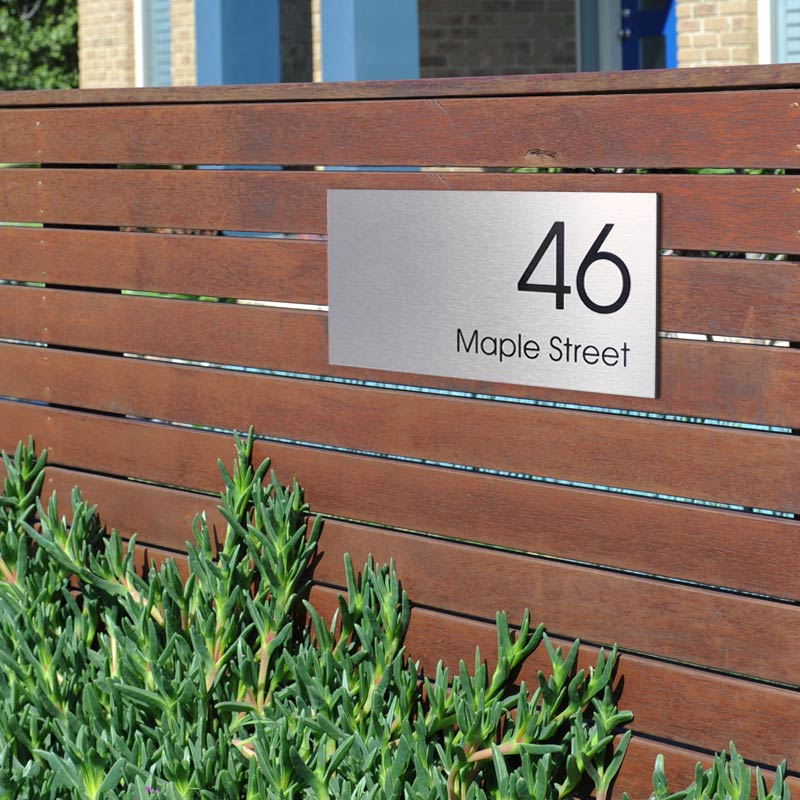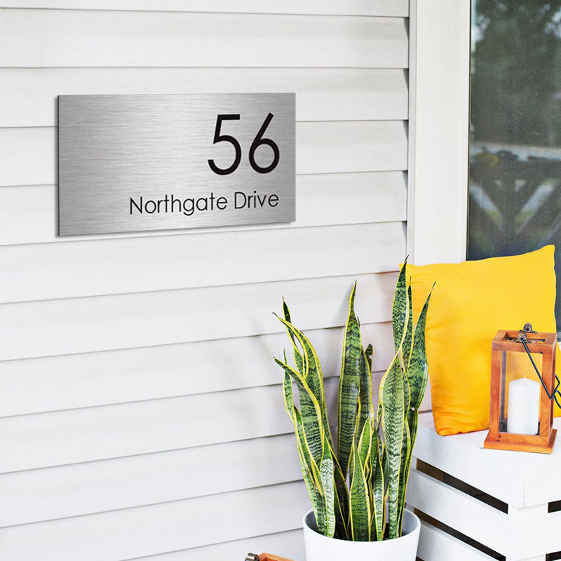 Your custom house sign is easy to install – simply use some construction adhesive from a hardware store (eg Liquid Nails Heavy Duty), apply to the back of your sign (ensuring you stop 2cm from the edges), and adhere to your surface.