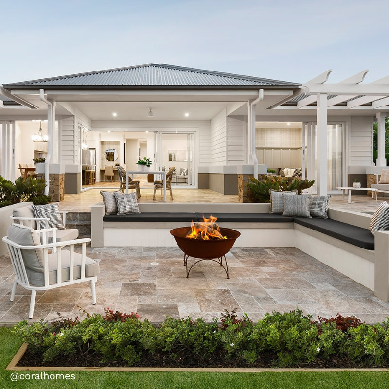Your rust fire pit will continue to naturally weather into its durable rustic finish. We do recommend keeping your rust fire pit away from surfaces that may be affected by rust staining, and using on a raised surface eg concrete pavers, to protect your decking or tiles from rust.
