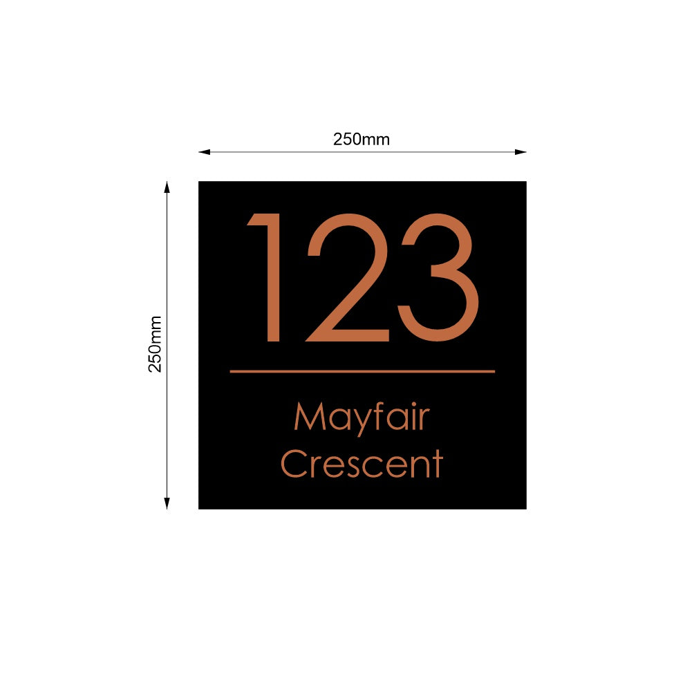 Black Custom House Sign Square - Copper Decal