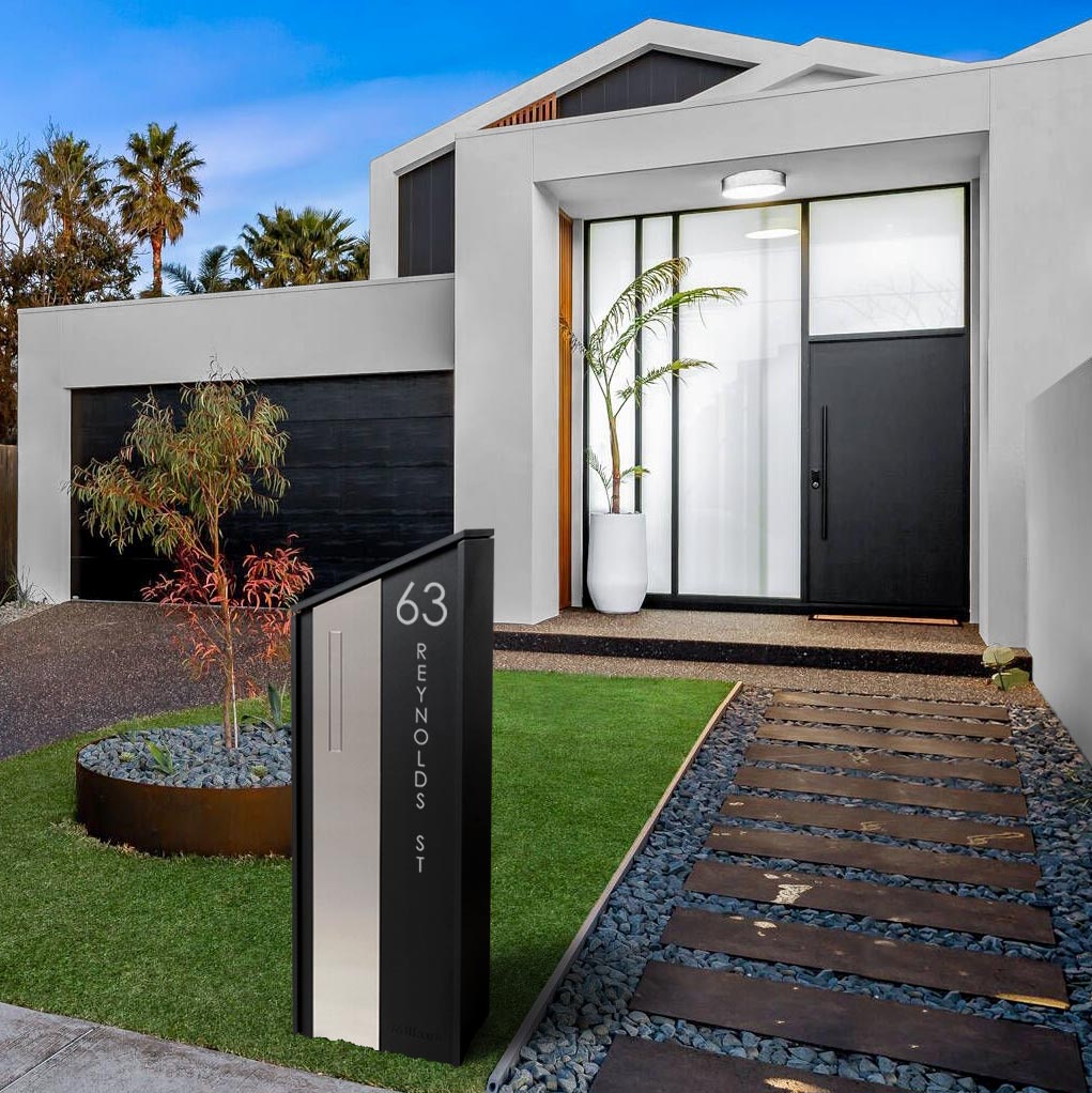 We suggest a custom house sign for our concrete letterboxes – we especially love the stainless-steel house signs paired with our concrete letterboxes with stainless steel faceplates.
