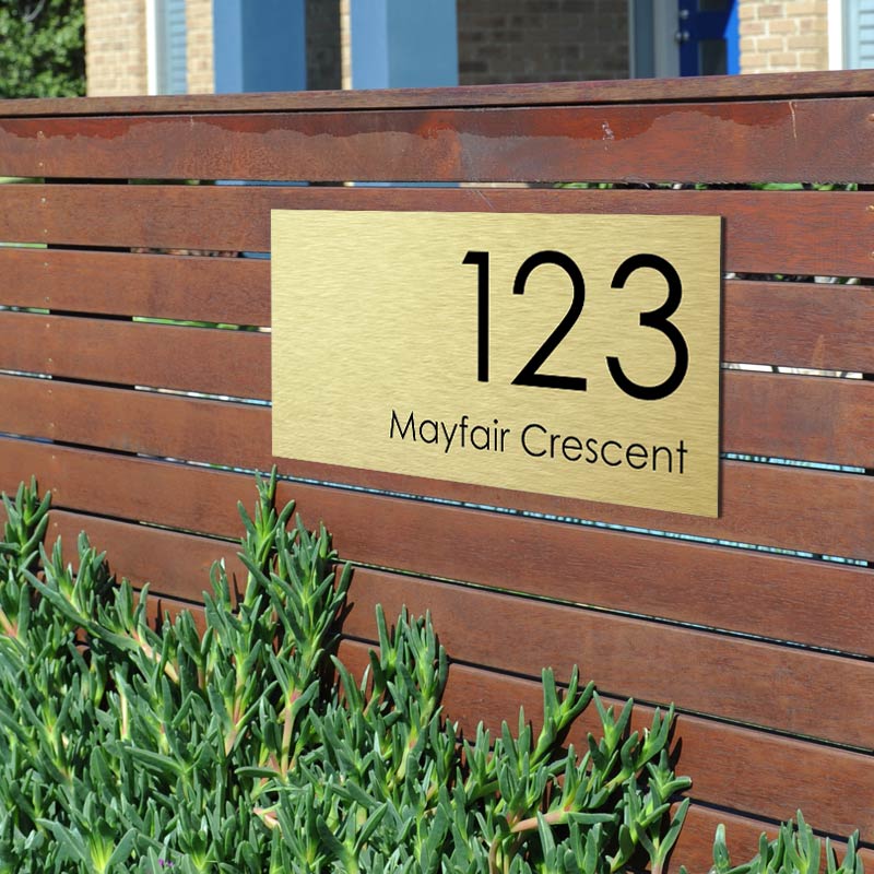 Your custom house sign is easy to install – simply use some construction adhesive from a hardware store (eg Liquid Nails Heavy Duty), apply to the back of your sign (ensuring you stop 2cm from the edges), and adhere to your surface.