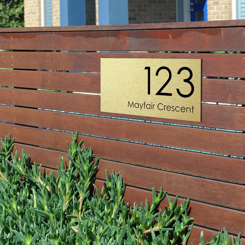 Your custom house sign is easy to install – simply use some construction adhesive from a hardware store (eg Liquid Nails Heavy Duty), apply to the back of your sign (ensuring you stop 2cm from the edges), and adhere to your surface.