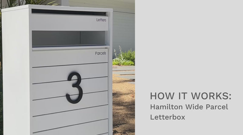 The Hamilton, Parcel Pal 2 and Austin 2 all include ‘Letters’ and ‘Parcels’ screen printed on the letterbox, whereas Noosa, Camden Large, Camden and Ascot have ‘Lift’ screen printed on the front on the lid to assist the postman and couriers with delivering your mail and packages. The colour of the text may differ depending on the letterbox – please refer to the individual product listing imagery to confirm the colour on your preferred letterbox.
