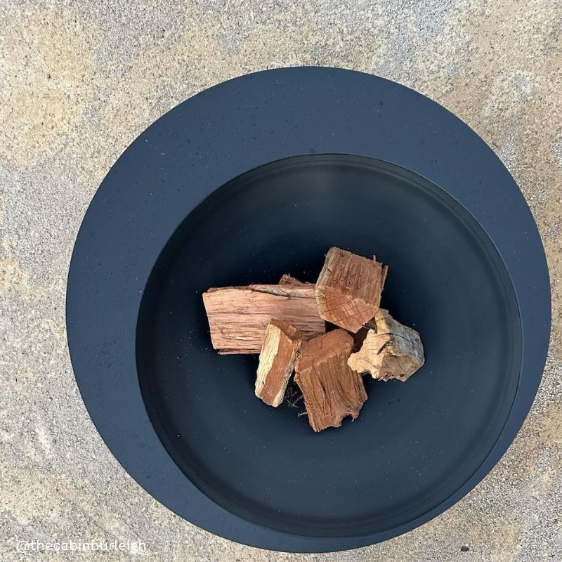 Begin by placing tinder in the centre of the empty fire pit, and then add kindling on top – the two most popular stacking methods are either a traditional “Tee-pee” shape, or alternatively, a “Jenga” style tower. Regardless of which method you use, it is important to ensure you leave adequate gaps to allow good air flow.