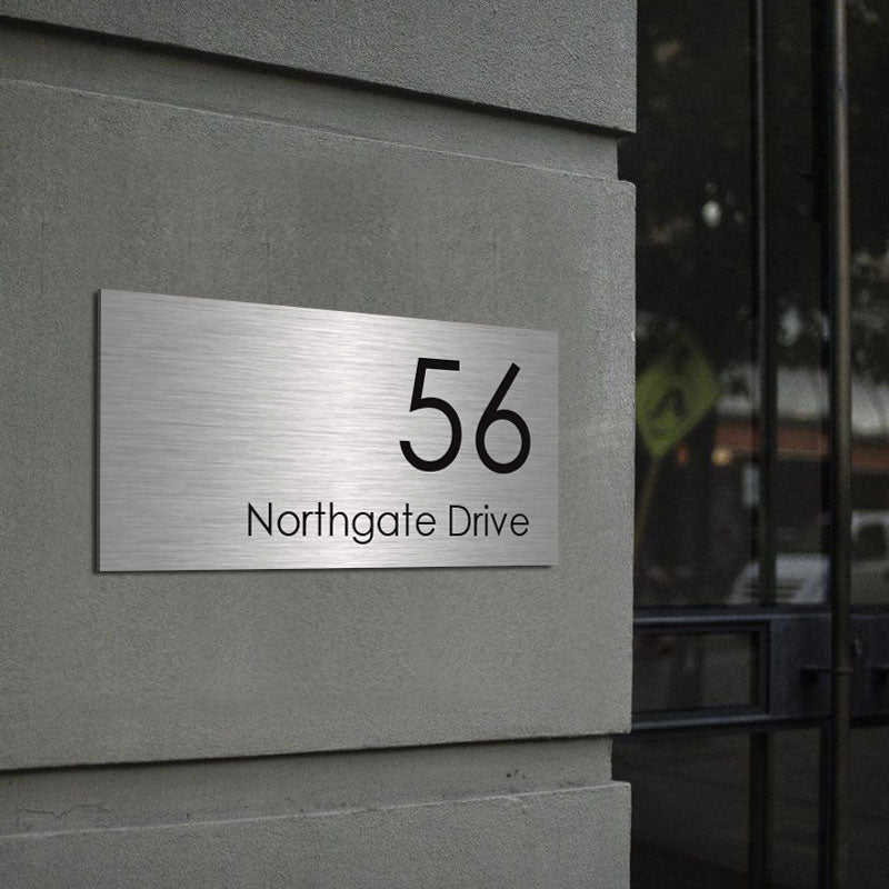 Your custom house sign is easy to install – simply use some construction adhesive from a hardware store (eg Liquid Nails Heavy Duty), apply to the back of your sign (ensuring you stop 2cm from the edges), and adhere to your surface.