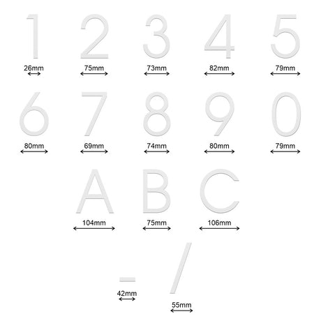 Our house numbers come in a variety of finishes and sizes to suit every letterbox, ranging from 50mm to 300mm. On each letterbox listing, you can view suggestions of house numbers that we recommend for that product, however you can also refer to our extensive measurement specifications for each letterbox to assess if your preferred house number will fit on your preferred letterbox surface area.
