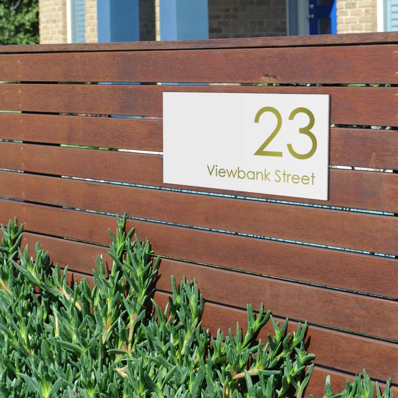 Your custom house sign is easy to install – simply use some construction adhesive from a hardware store (eg Liquid Nails Heavy Duty), apply to the back of your sign (ensuring you stop 2cm from the edges), and adhere to your surface.